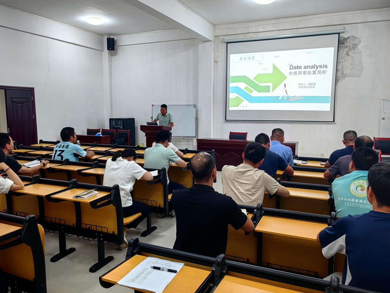 (图为:青年技术骨干讲授水质异常处置理论知识)