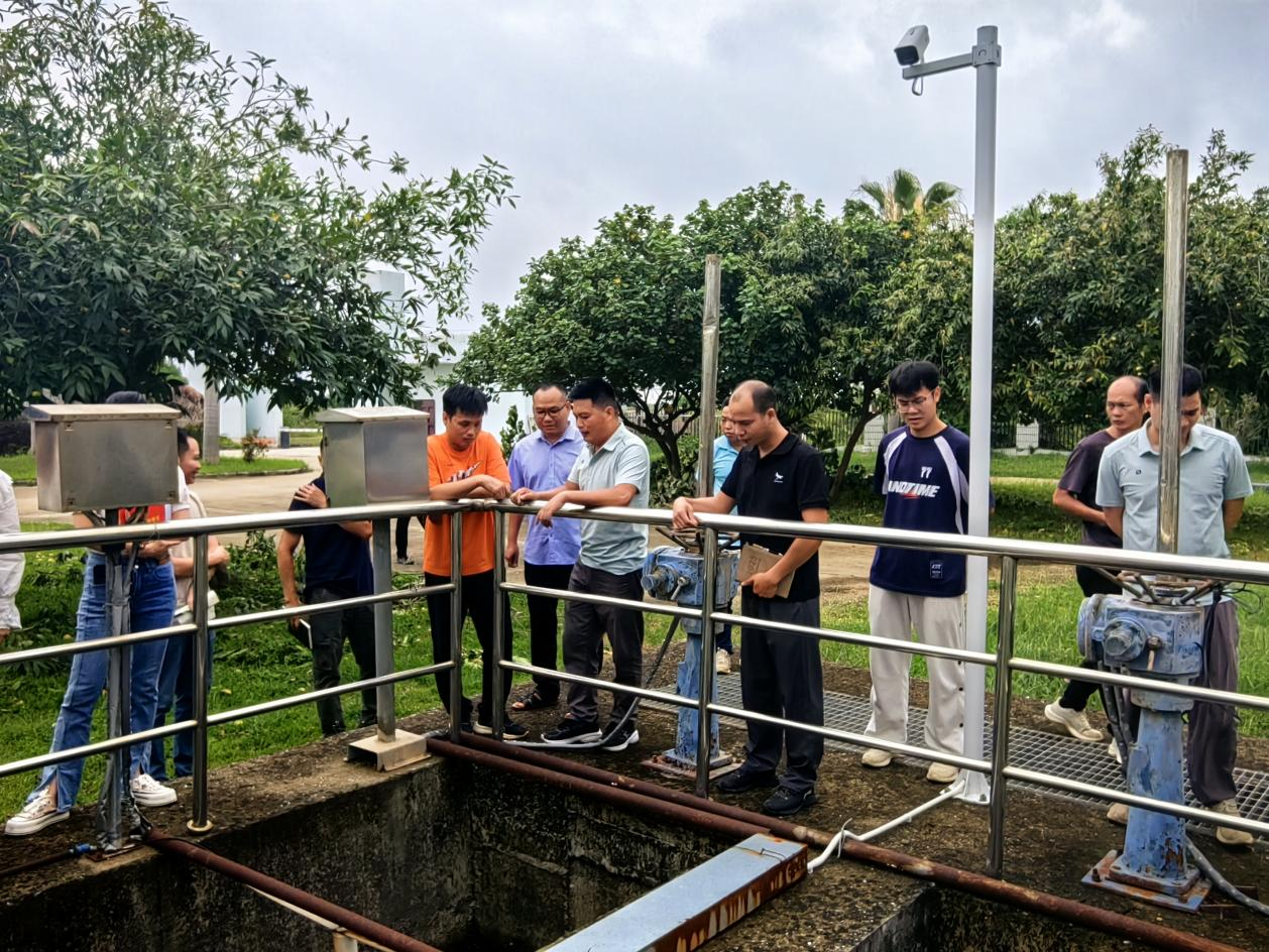 (图为:污水公司厂区进水口讲解水质异常判断及处置方法)