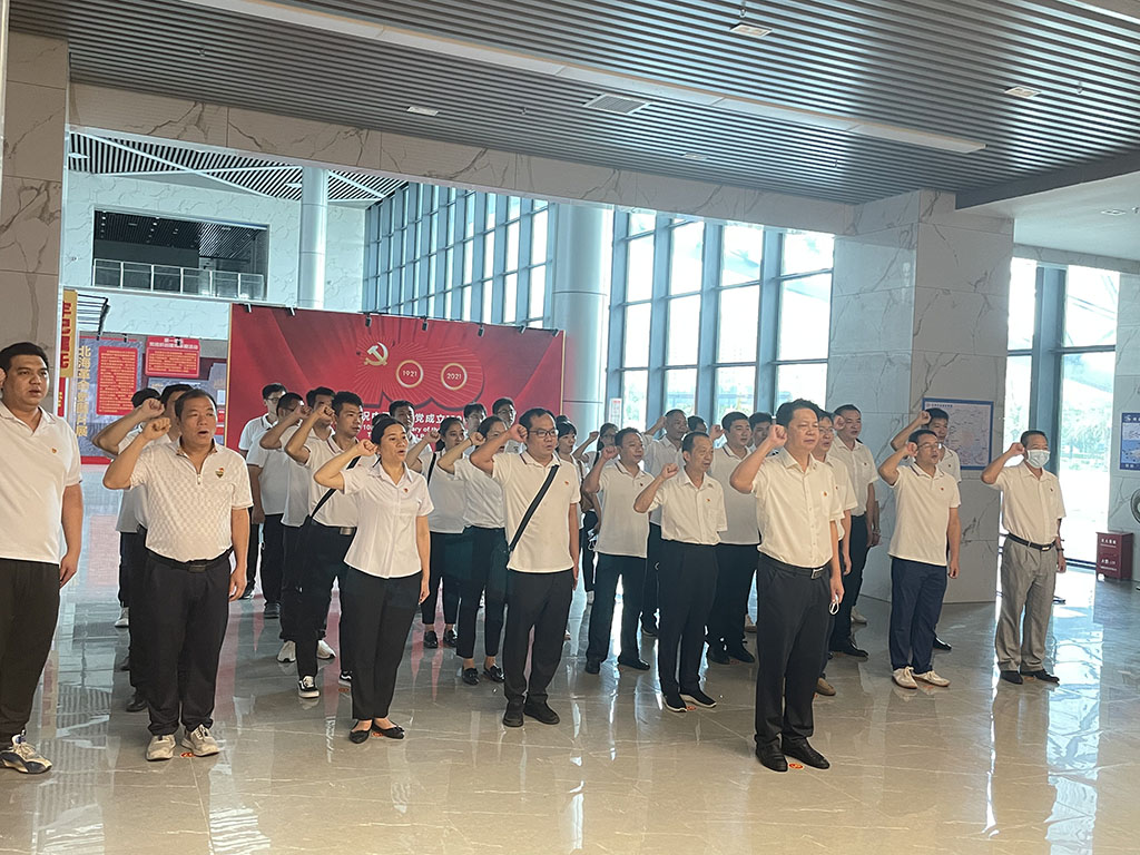 参观完展览后,李忠总经理带领全体党员重温入党誓词,并给大家上了一节生动的现场“微党课”。betway必威公司作为北海市一个重要的平台企业,肩负着北海向海经济项目建设重任,李忠总经理分析了betway必威公司的危与机、时与势,强调现在公司处在转型发展的关键时期,要像革命先辈们一样向前冲锋,没有任何退路。他要求全体党员干部要牢记党的光辉历程,从百年党史中汲取力量,继承并发扬共产党人百折不挠、艰苦奋斗的精神,保持“干就干最好、争就争第一”的工作劲头和“时不分昼夜、事不分你我”的工作作风,积极发挥共产党员中流砥柱和先锋模范作用,凝心聚力、踔厉奋发,助推公司突破瓶颈实现新跨越。