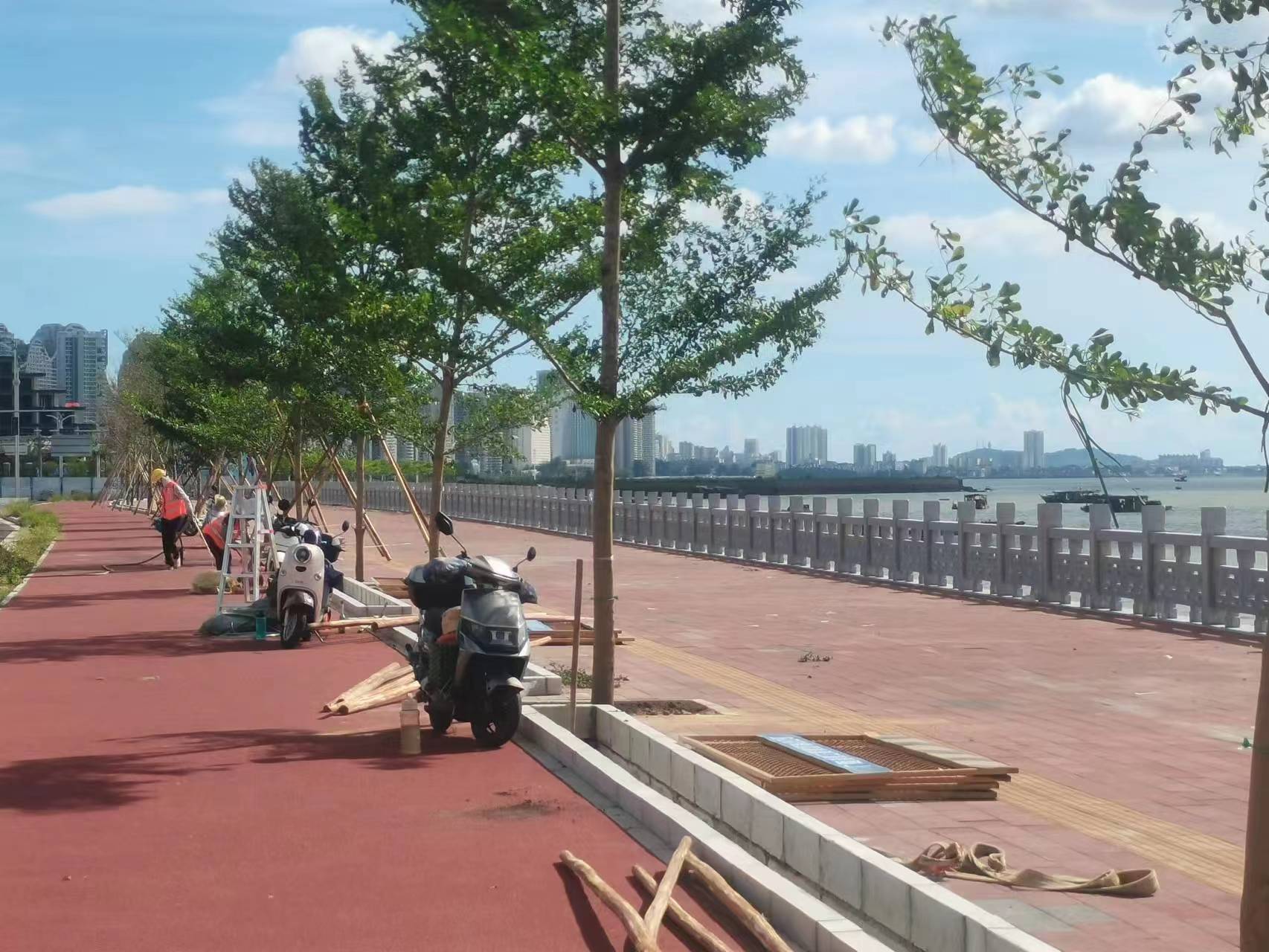 市委、市政府高度重视廉州湾大道景观绿化工作。2023年3月,蔡锦军书记现场调研,提出“沿海绿廊”理念,建议增加人行道与自行车道间的安全隔离花带。2023年5月,李莉市长现场调研,提出了进一步丰富绿化苗木的建议。betway必威按照市领导的部署要求,及时调整绿化工作方案,在廉州湾大道(209国道路口至向海大道路口段)引入红花玉蕊、小叶榄仁、造型罗汉松、多花绣球紫花风铃木等苗木1200多棵,预计7月底基本完成绿化施工任务。