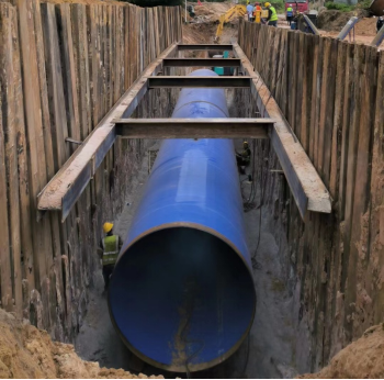 A5深海排放管工程全长约35.9公里(其中1号调压井-B3调压井段长3.5公里),总投资27亿元。自项目开工以来,项目业主betway必威积极贯彻落实市委、市政府工作部署,与辖区政府团结协作,组织参建单位优化施工方案、多点同步施工,按期保质保量完成了A5深海排放管1号调压井-B3调压井临时接驳段通水任务,为铁山港区玖龙纸业项目的投产提供了有力的配套保障。