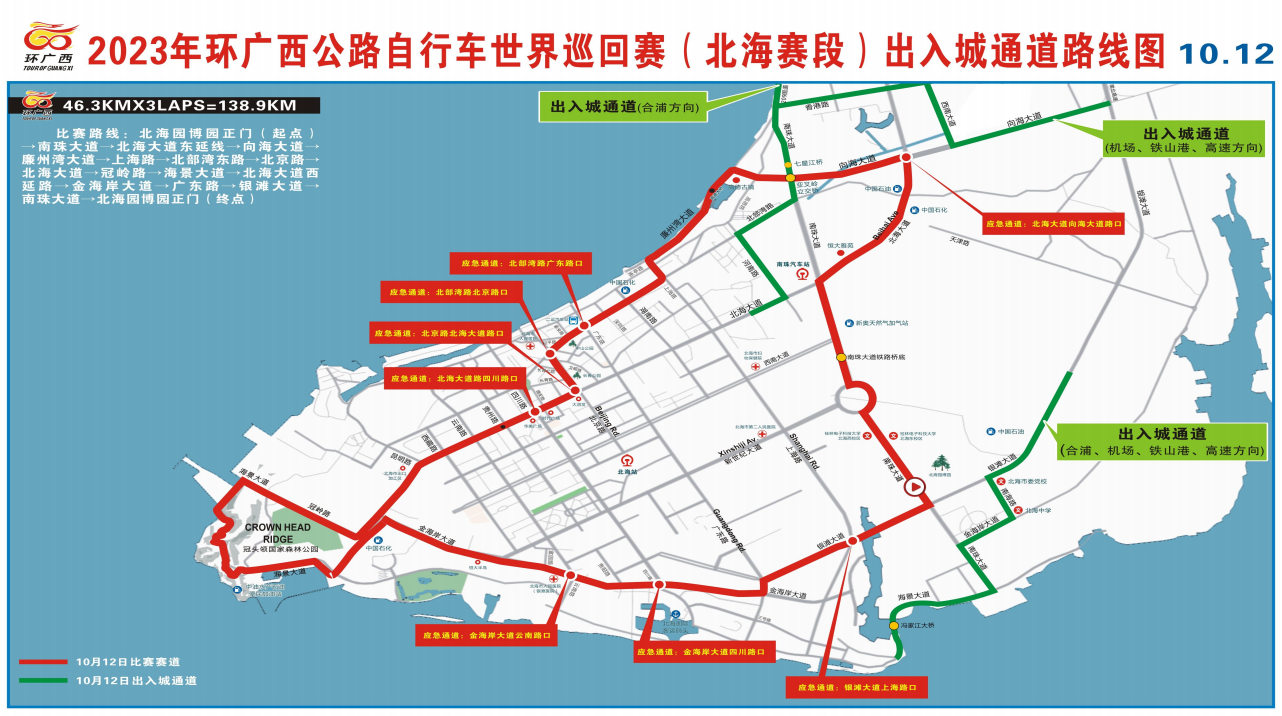 2023环广西公路自行车赛世界巡回赛将于10月12日-17日在北海、钦州、南宁、柳州、桂林5个城市举行,该赛事是经国际自行车联盟授权,由中国自行车运动协会、广西壮族自治区人民政府联合主办的世界顶级、中国唯一的公路自行车世界巡回赛。