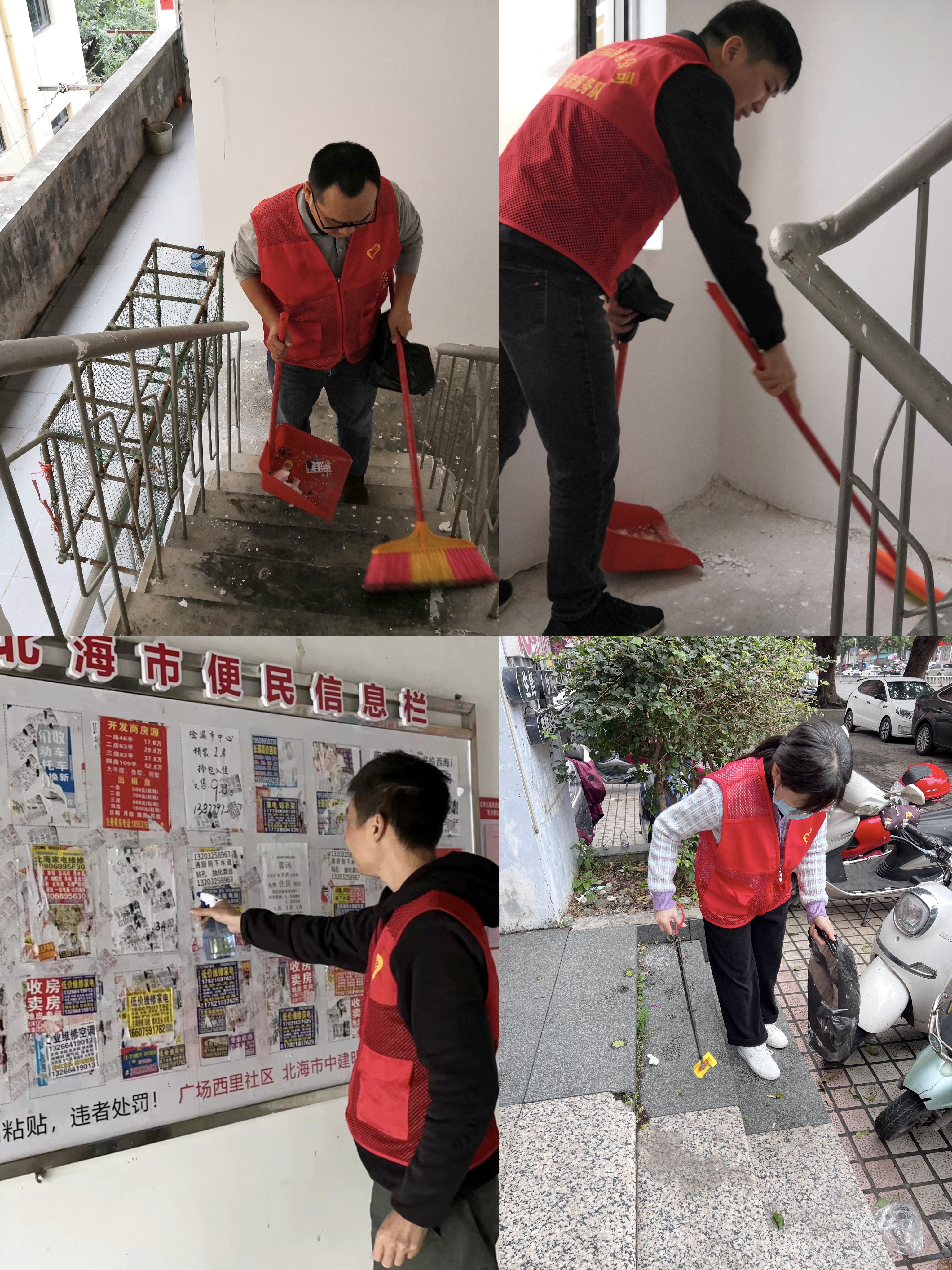 活动当天,志愿者们早早地来到活动地点,领取清扫工具。随后,大家按照事先划分好的区域,分组开展清洁工作。志愿者们分别清扫道路旁和居民楼梯间的垃圾、清理绿化带内的杂物以及清理便民信息栏内张贴不规范的广告。