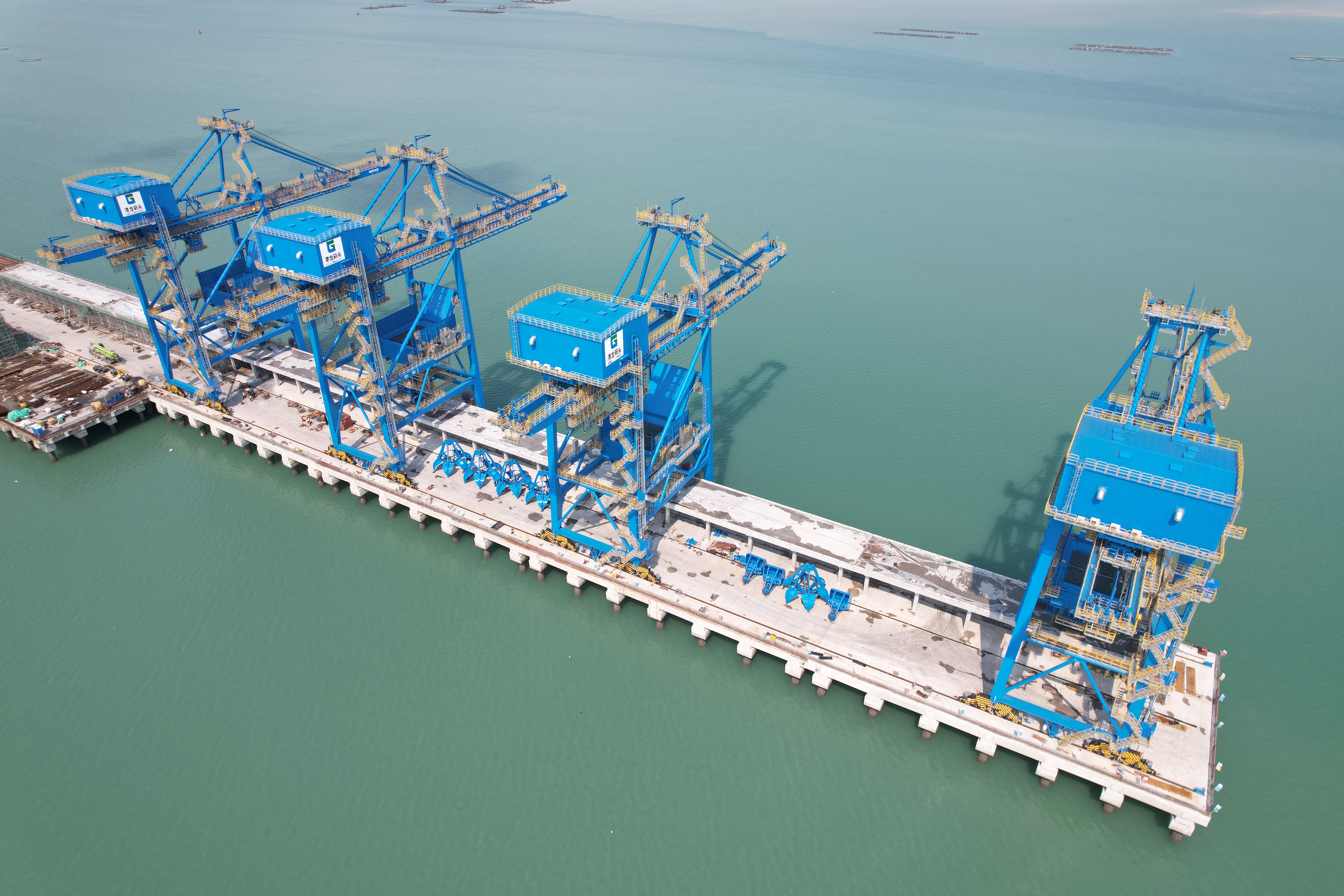 3月8日,北海港铁山港西港区石头埠作业区8号9号泊位工程建设关键节点工程—4台单机重达千吨的桥式抓斗卸船机全部成功完成安装。