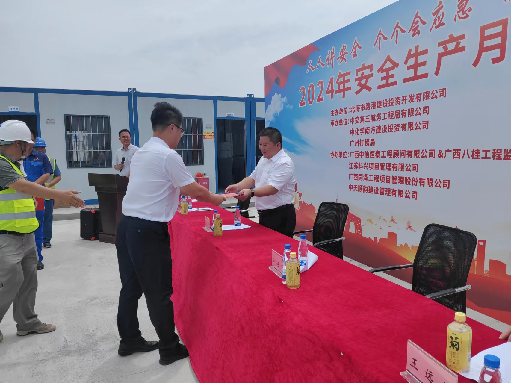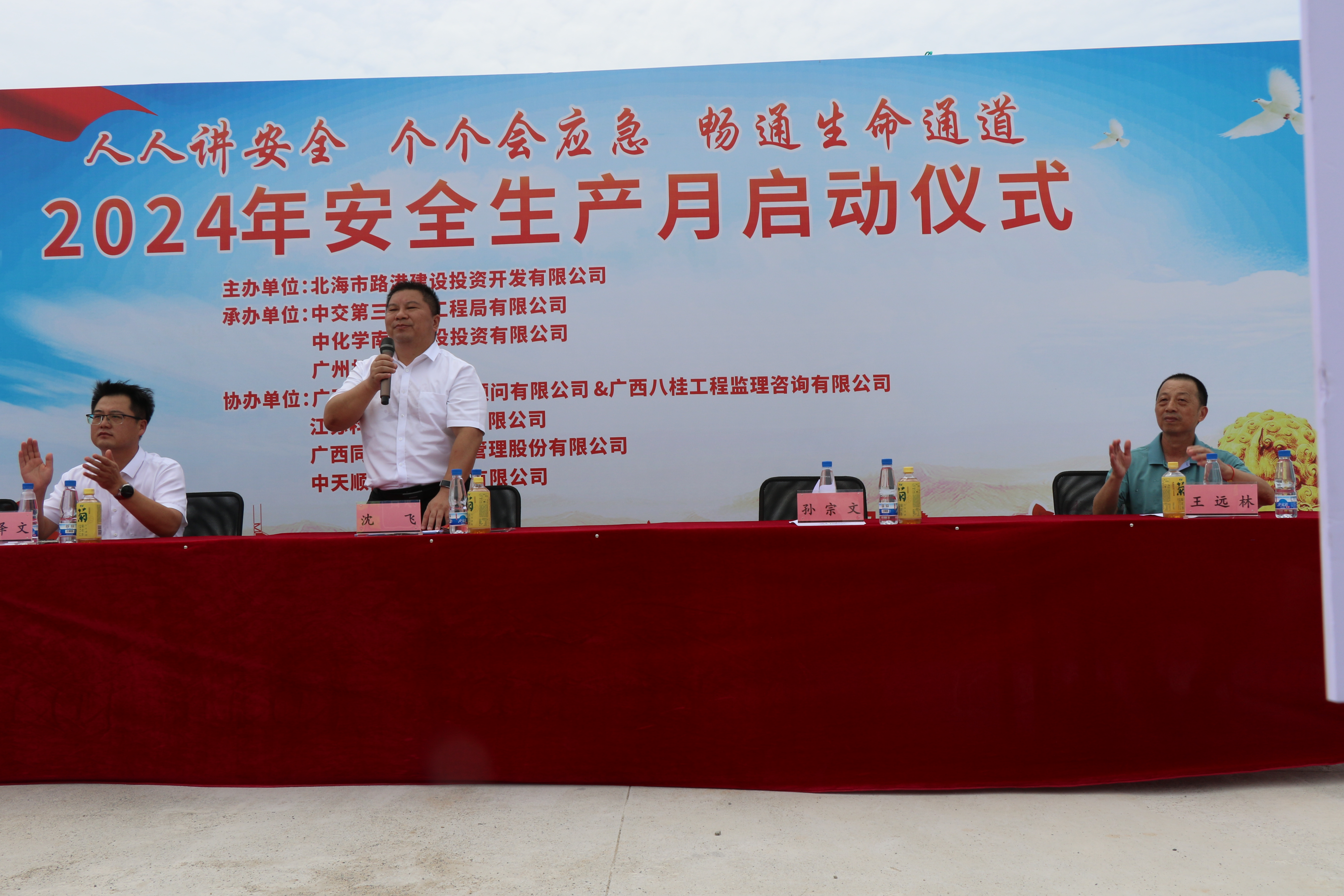 betway必威公司党政领导班子高度重视安全生产工作,5月中旬提前谋划,6月初立即开展了2024年“安全生产月”宣贯活动。公司领导分别在工地现场组织参建单位进行“人人讲安全、个个会应急——畅通生命通道”主题宣讲活动。6月14日,betway必威公司在北海市铁山港A5深海排放管项目现场组织举办了2024年“安全生产月”启动仪式,活动现场沈飞董事长强调:一是要深入学习贯彻习近平总书记关于安全生产重要论述,严格落实安全生产“十五条”硬措施;二是要夯实安全生产主体责任,强化现场管理,坚持安全生产“四不放过”原则,积极消除生产现场的安全隐患,以项目安全生产水平提升和安全生产形势持续稳定向好为目标,保障项目建设任务的高品质完成;三是以“安全生产月”活动为契机,加强活动宣传,加强安全知识教育普及,进一步营造“人人讲安全,个个会应急”的良好氛围。