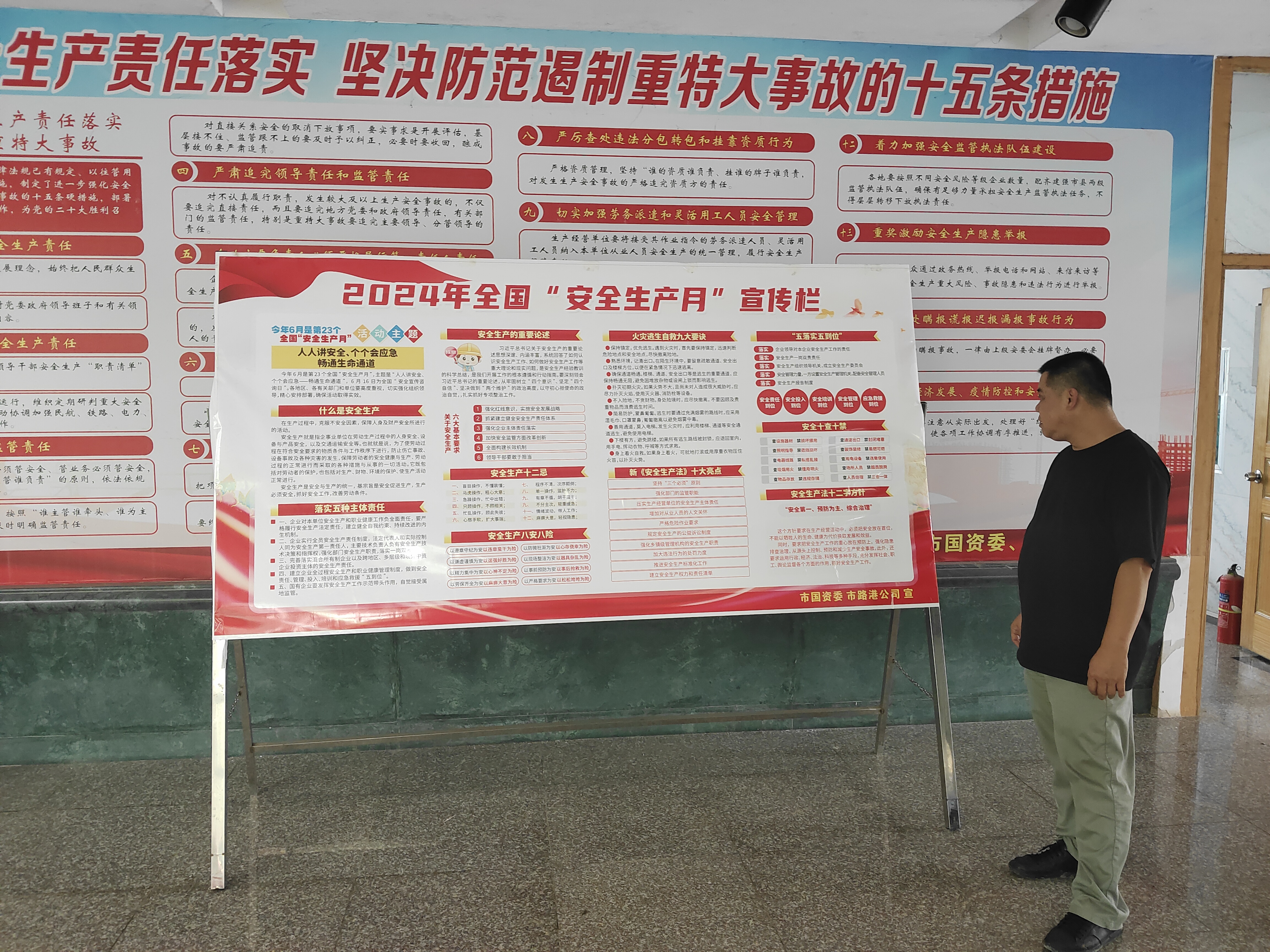 安全生产月活动期间,公司根据实际情况,采取了多形式、多样化、全方位的宣传教育活动,组织深入学习贯彻习近平总书记关于安全生产重要论述。按照活动要求,由总工办牵头在公司办公楼前的LED屏滚动播放安全公益广告,在铁山港办事处、在建项目施工现场等重要岗点、场所悬挂了“安全生产月”宣传横幅3条;张贴了安全警言、警句、标语挂图、墙报共12张。组织员工观看“安全生产月”主题宣传片、《安全生产责任在肩》警示教育片。扎实开展“五进”活动,公司先后组织到在建项目现场及公司责任小区开展安全宣传进工地、进社区活动,发放安全宣传资料60余份,宣传“畅通生命通道”相关科普知识,促进提升风险防范、安全应急意识和自救互救能力,营造浓厚的宣传氛围。6月18日,根据市安委会的统一部署,我公司组织安全生产管理人员积极参加“安全宣传咨询日”活动,通过现场学习借鉴各单位的安全生产管理经验,进一步增强公司安全生产月活动的宣传效果。通过各种形式的宣传,用舆论导向激发员工参与“安全生产月”活动的热情,引导员工牢固树立“安全第一”的思想,把规范自身行为、注重安全生产变为自觉行动。