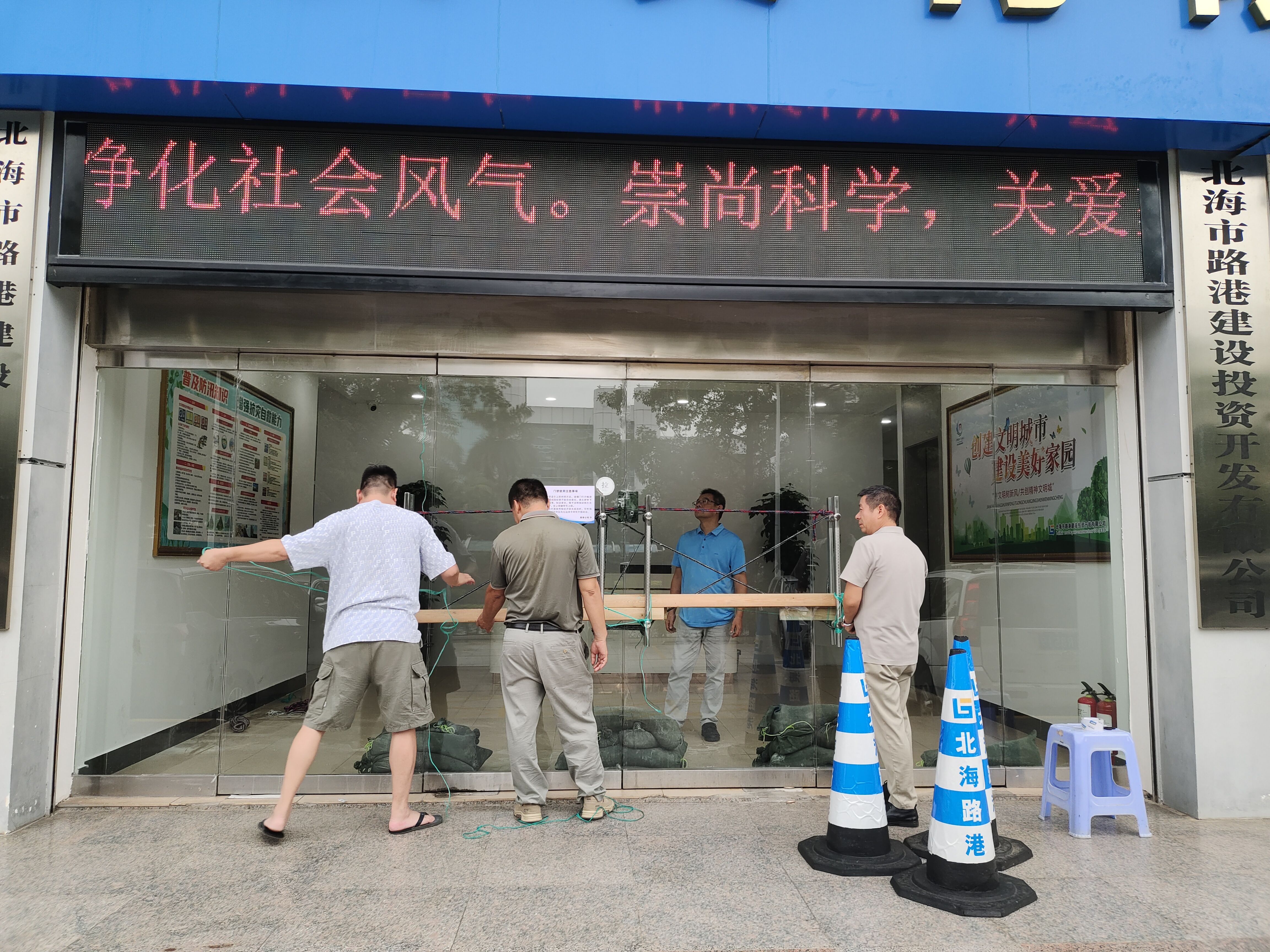 受今年第11号超强台风“摩羯”影响,9月7日以来我市出现强降雨和大风等极端天气,betway必威公司积极应对、迅速行动,压紧压实防汛防台风责任,全力以赴做好台风“摩羯”防御及灾后恢复工作。台风“摩羯”预警发布之后,公司沈飞董事长、李忠总经理及孙宗文副总经理第一时间组成检查组对公司市区办公区、各子公司、各在建项目开展了防汛防台风专项安全检查。公司全体员工严阵以待,在台风来临前积极做好隐患排查、人员转移、物资准备等工作,在台风过境时重点岗位坚持做好24小时值班,确保灾情险情的预警叫应、巡查避险以及信息报送工作。在台风过境后,现场人员第一时间对各子公司、各在建项目进行巡查,组织100多人及10多台机械设备开展风后生产恢复,对吹倒的廉州湾大道、向海大道130多棵树木进行扶正,对破损的安全防护设施及围栏进行修复,及时消除安全隐患,切实保障人民群众生产生活安全有序。