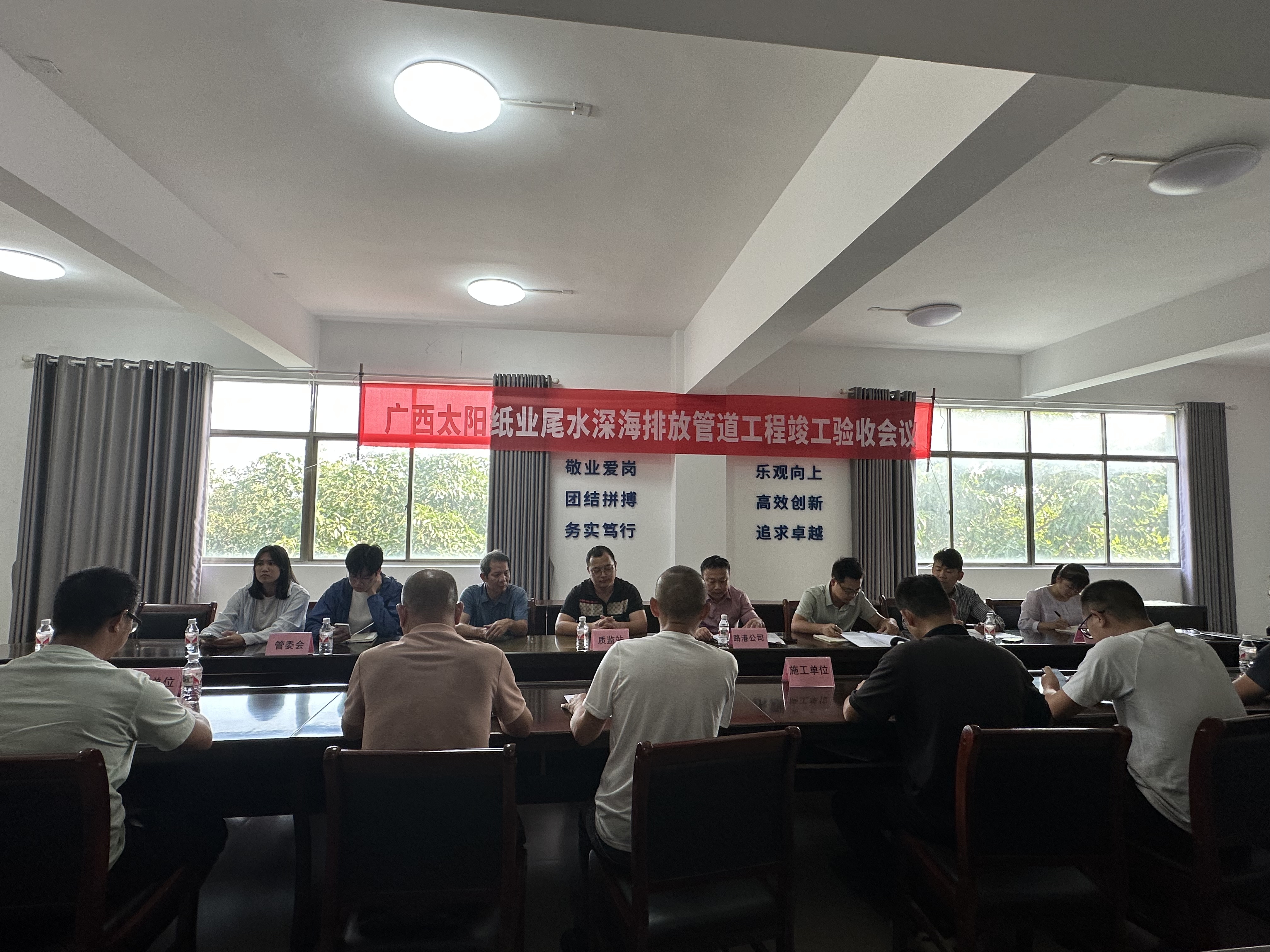 验收组严格按照竣工验收程序,深入查看现场、细致查阅资料和听取参建各方汇报,一致认为:广西太阳纸业尾水深海排放管道工程已按设计要求和合同约定的内容完成,工程实体质量符合合同要求,工程资料基本齐全,工程质量核验合格,同意竣工验收。