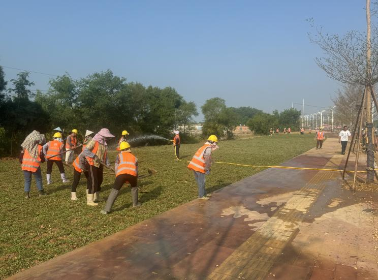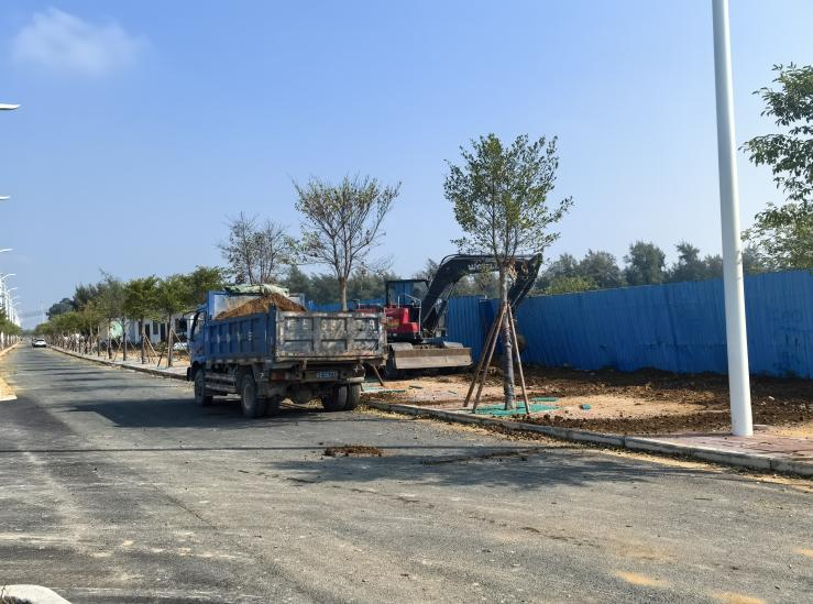 路侧建筑垃圾清理,培土整平,满铺草皮,为市民群众打造休憩营地。