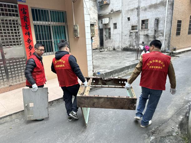 活动当日,志愿者们早早来到责任小区,大家满怀热情,迅速投入到各项工作中。楼道杂物的清理是重点任务之一。许多楼道长期堆放着旧家具、纸箱、自行车等杂物,不仅影响了居民的正常通行,还存在严重的安全隐患。志愿者们上门耐心与居民沟通协商,讲解楼道杂物潜在风险,争取理解支持后,展开全面清理行动。将一件件杂物小心地搬运下楼,使得楼道瞬间敞亮开阔。