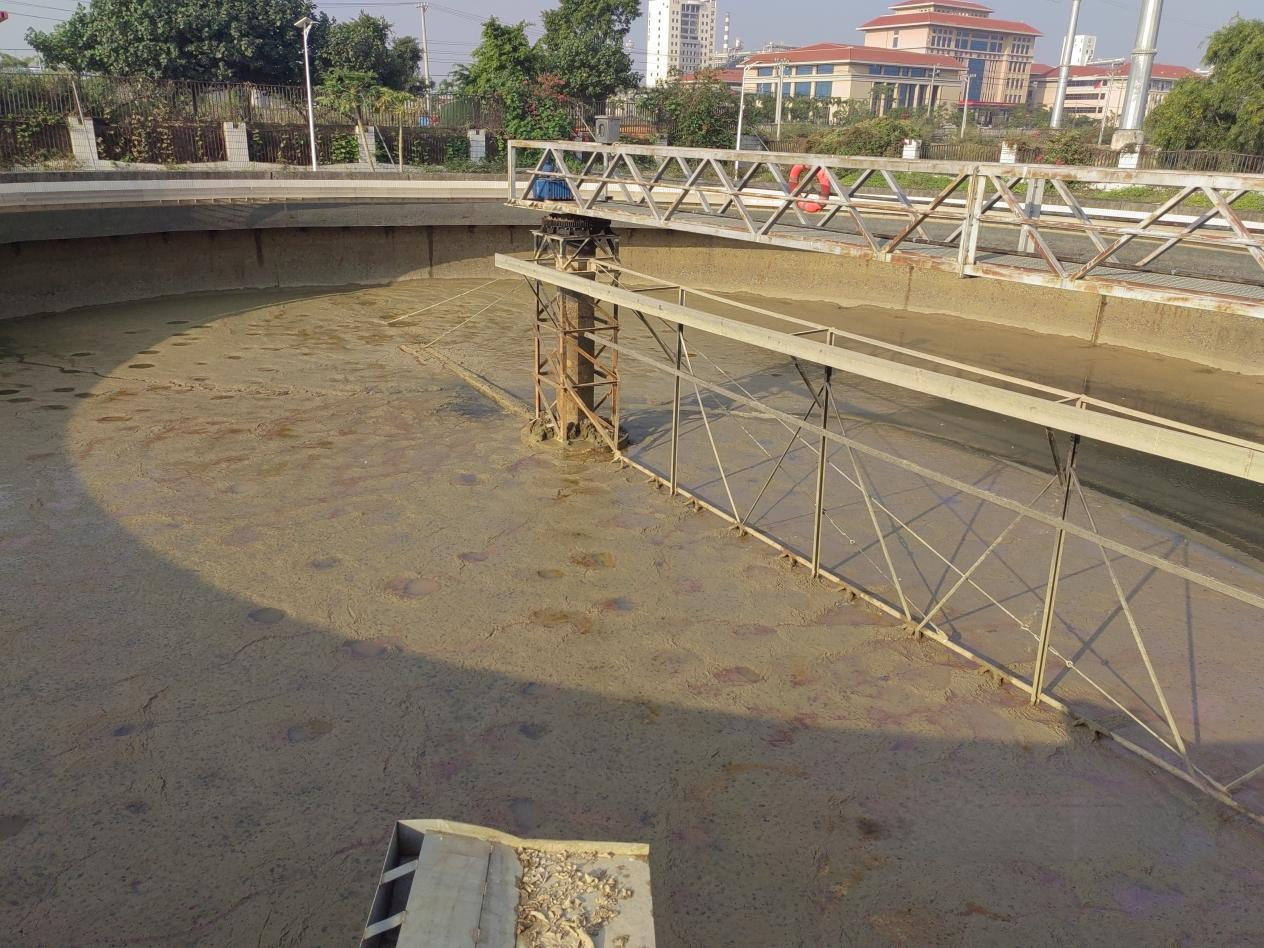 二沉池刮泥机停机后沉积了厚厚的泥层