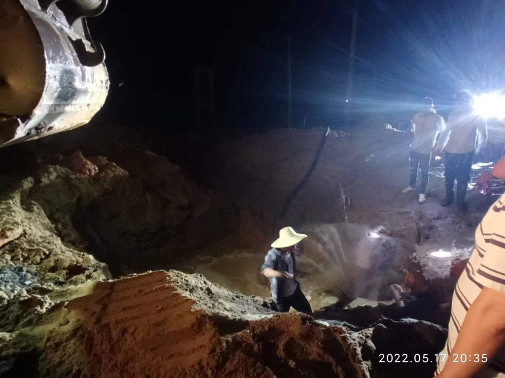 betway必威获悉后,第一时间组织工作人员赶赴现场配合施工人员进行抢修。我公司员工在对管道破损情况进行评估后,立即采取对污水管临时封堵方法,保障通水正常及群众出行。
