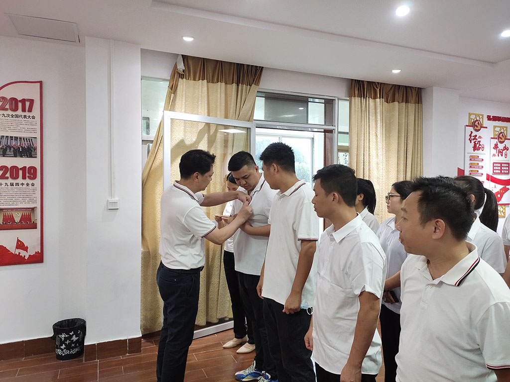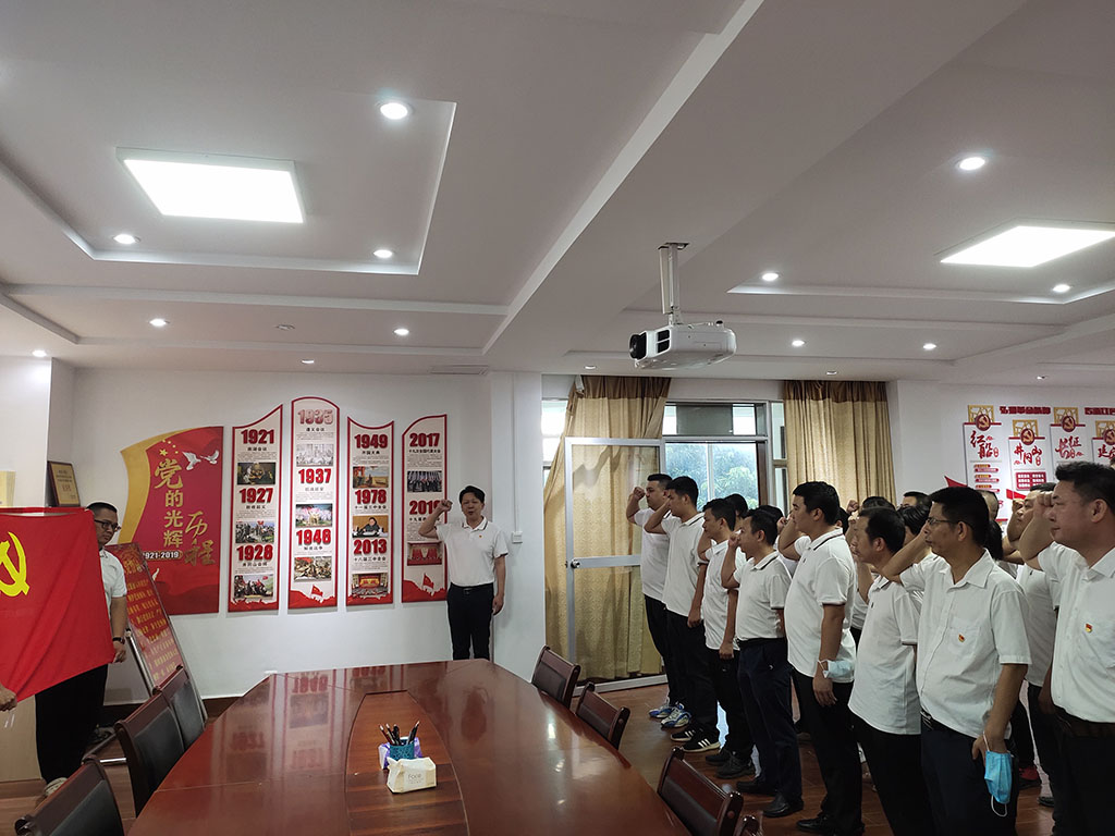 7月1日,党总支组织全体党员、入党积极分子到海城区廉政警示教育基地开展廉政教育。通过一个个典型案例的展现,一句句发人深省的告诫,提醒着每一位党员、入党积极分子坚守理想信念,进一步提高自重、自省、自警、自励的意识,树立正确的价值观和道德观。紧接着,组织新入党同志和党员同志一同面对党旗进行入党宣誓。公司总经理李忠同志为新入党同志佩戴党员徽章,并叮嘱他们牢记党员身份,在自己岗位上发挥先锋模范作用。