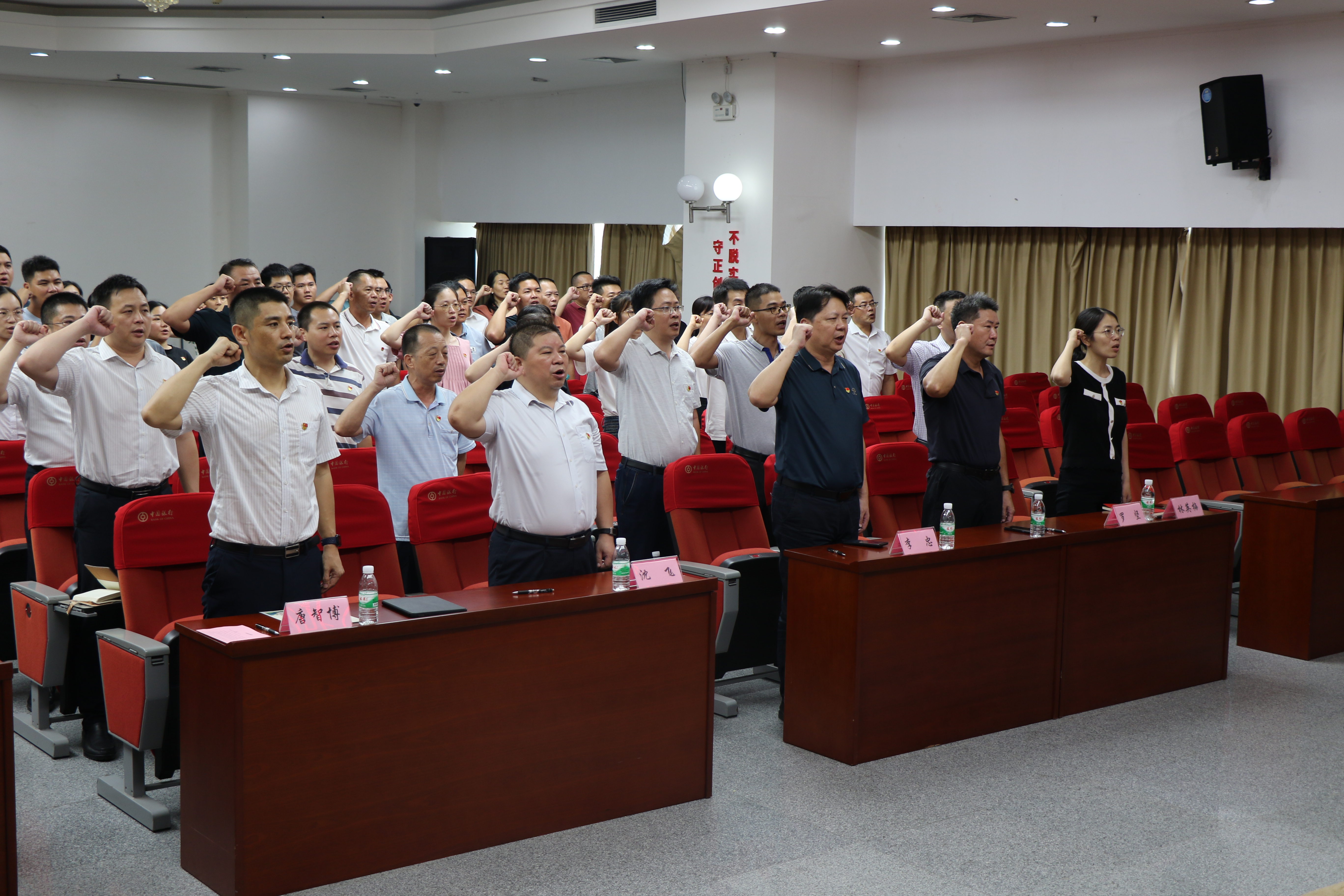 最后,全体党员整齐列队,庄严地举起右手,在铿锵有力、掷地有声的宣誓声中,集中重温入党誓词。80个字的入党誓词,是每名党员奋斗的“精神源泉”,是大家不变的“入党初心”,表达了对党的无限忠诚和崇高敬意。