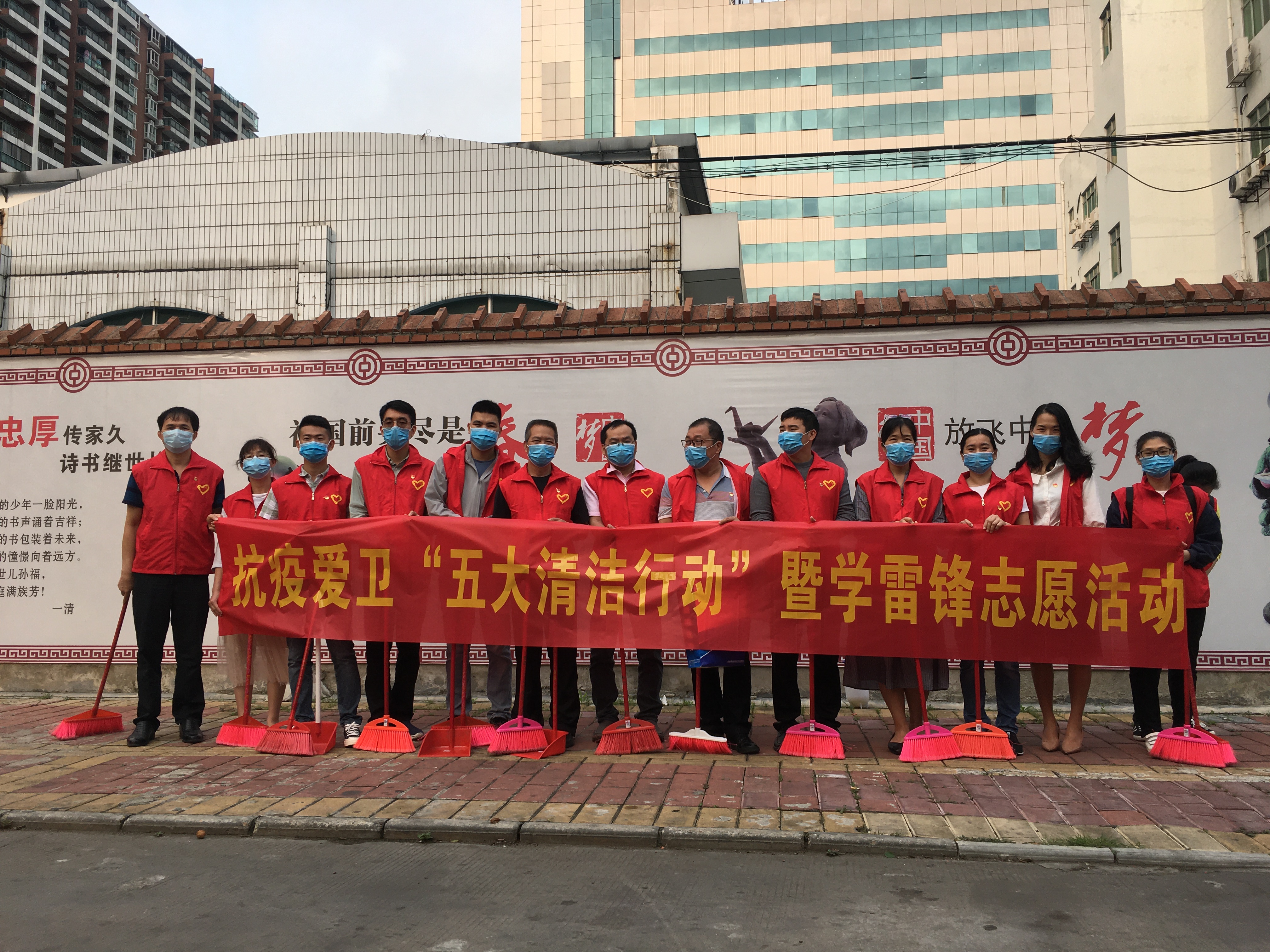 为深入学习贯彻习近平总书记关于志愿服务重要指示精神,大力弘扬雷锋精神,助力全市疫情防控工作,根据《北海市新型冠状病毒感染的肺炎疫情防控工作领导小组指挥部关于深入开展抗疫爱卫“五大清洁行动”的通知》精神,结合“学习雷锋月”活动,公司党支部组织党员志愿服务队深入社区开展志愿服务。