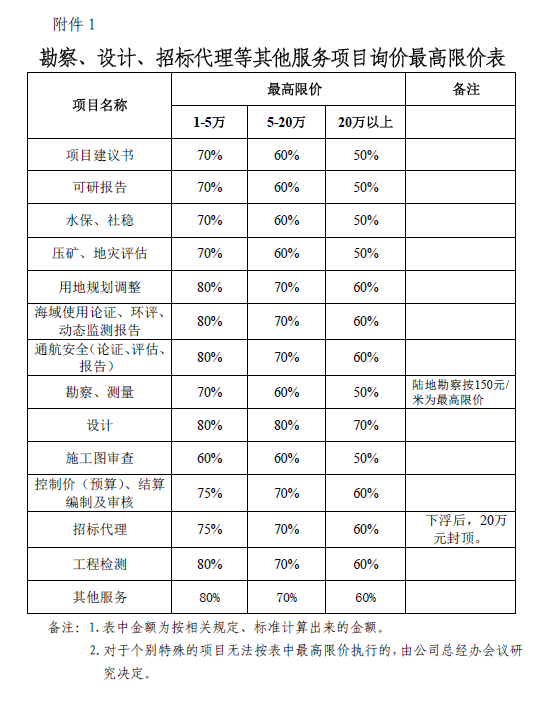 适用本办法的勘察、设计、监理等服务的询价采购项目,其中监理服务以暂定施工合同价为计算基数,根据监理有关规定计算的不高于80%为监理询价最高限价,最终的价格按照审定的施工造价为计算基数,按合同结算;勘察、设计、招标代理等其他服务询价采购项目的最高限价按《勘察、设计、招标代理等其他服务询价采购项目最高限价表》(附件1)执行。