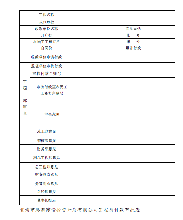 (二)公司审核最终结清相关资料,审核通过后,施工单位打印报表,办理支付手续。