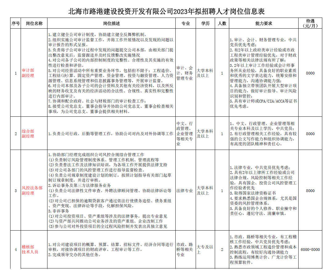 公司招聘管理、专业技术人才5人,岗位要求详见岗位信息表。
