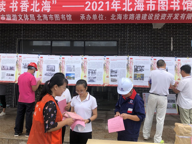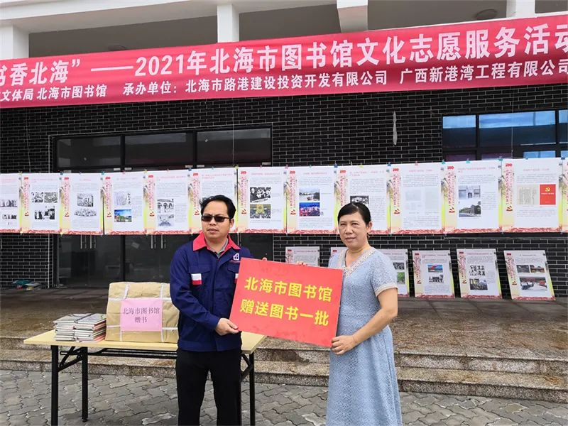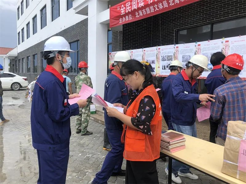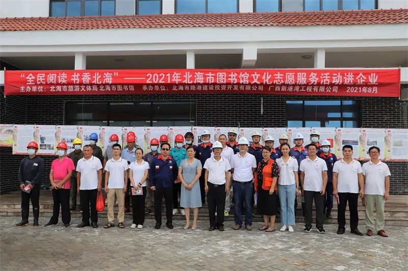 8月12日,由北海市文体旅游局主办,北海市图书馆携手路公司及广西新港湾工程有限公司共同承办了的“全民阅读 书香北海”——2021年北海市图书馆文化志愿服务进企业在铁山港区公共执法码头现场拉开帷幕。
